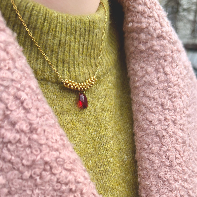 Délicatement tissé à la main, le collier Briagha allie la précision du tissage rocaille à l’éclat des cristaux. Son motif finement structuré épouse le cou avec élégance, tandis que le cristal, disponible en plusieurs nuances, apporte une touche lumineuse et subtile.