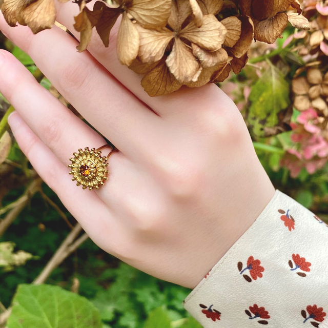 Fait à la main avec un tissage à l'aiguille de perles japonaises, cette bague unique en acier doré motif soleil orné d'un cristal de verre éclatant en son centre, est parfaite pour apporter une touche de lumière et d'élégance à votre look quotidien.